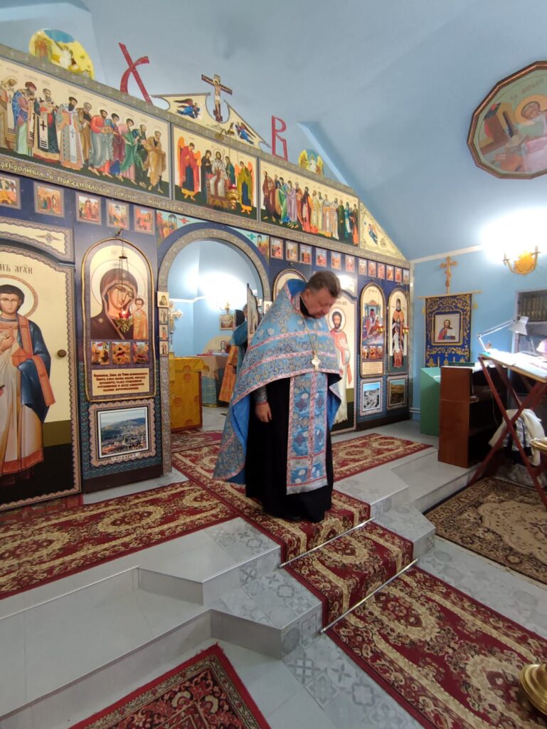 Вечером 27 августа 2025 года, в канун празднования Успения Пресвятой Владычицы нашей Богородицы и Приснодевы Марии, протоиерей Андрей Плугатырев совершил всенощное бдение в храме Рождество Пресвятой Богородицы.